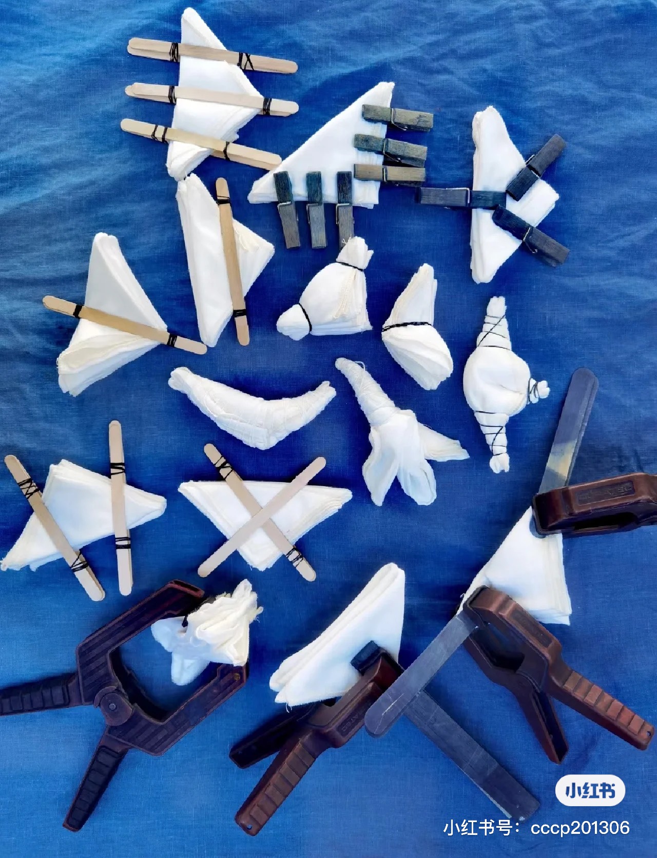 扎染是一种民间传统而独特的染色工艺,具有悠久的历史。人们在染色前把织物用线、绳、夹等将部分结扎起来,使之不能着色,染色后解开绳结,经过漂洗、晾晒等工序,就能得到变化自然、趣味无穷的美丽图案了!
